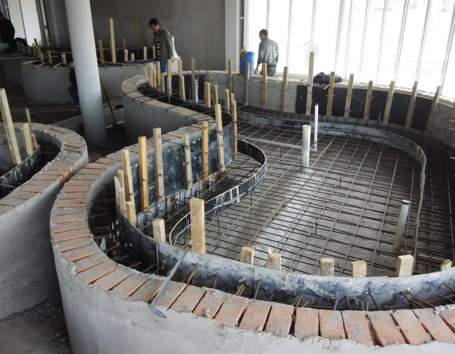 池水由设在深水区的回水口通过循环水泵提升至沙缸过滤器,经过过滤、消毒等程序之后达到处理的要求,然后由池壁进水口回到泳池内,从而完成池水循环过程。