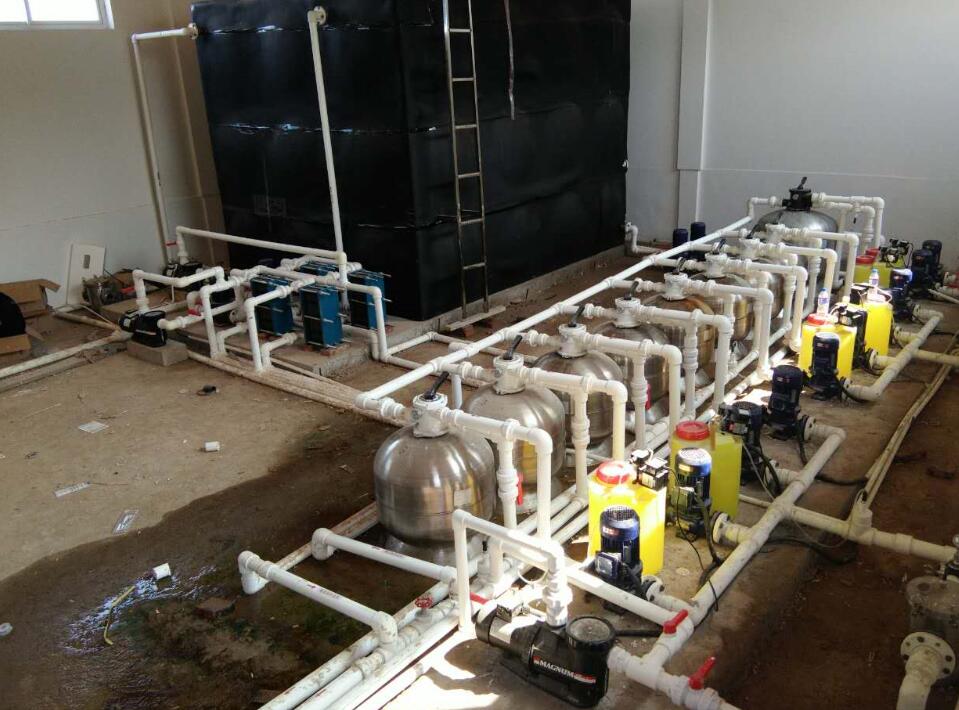 循环水设备:304不锈钢沙缸过滤器、不锈钢毛发收集器、上海蓝深管道泵、美国金涛水质监测仪、美国蓝白计量泵、新力板式换热器